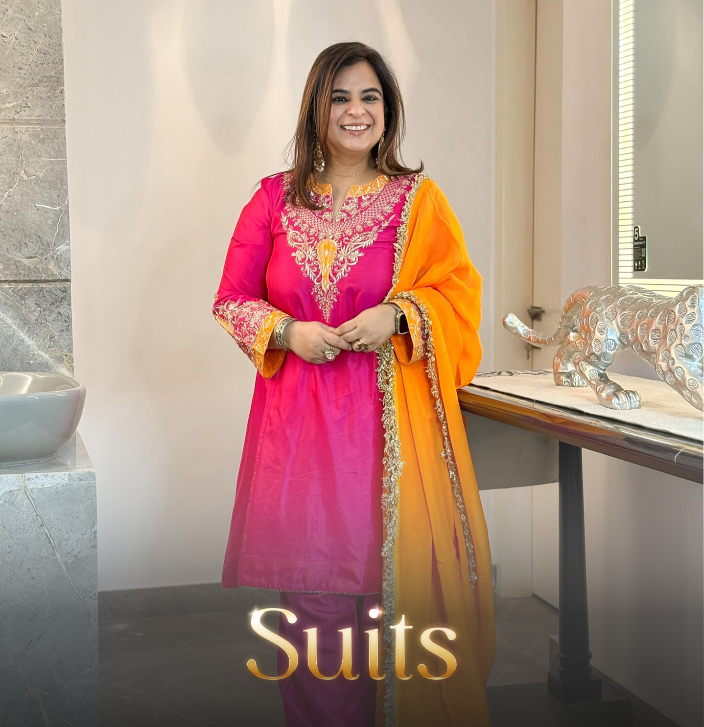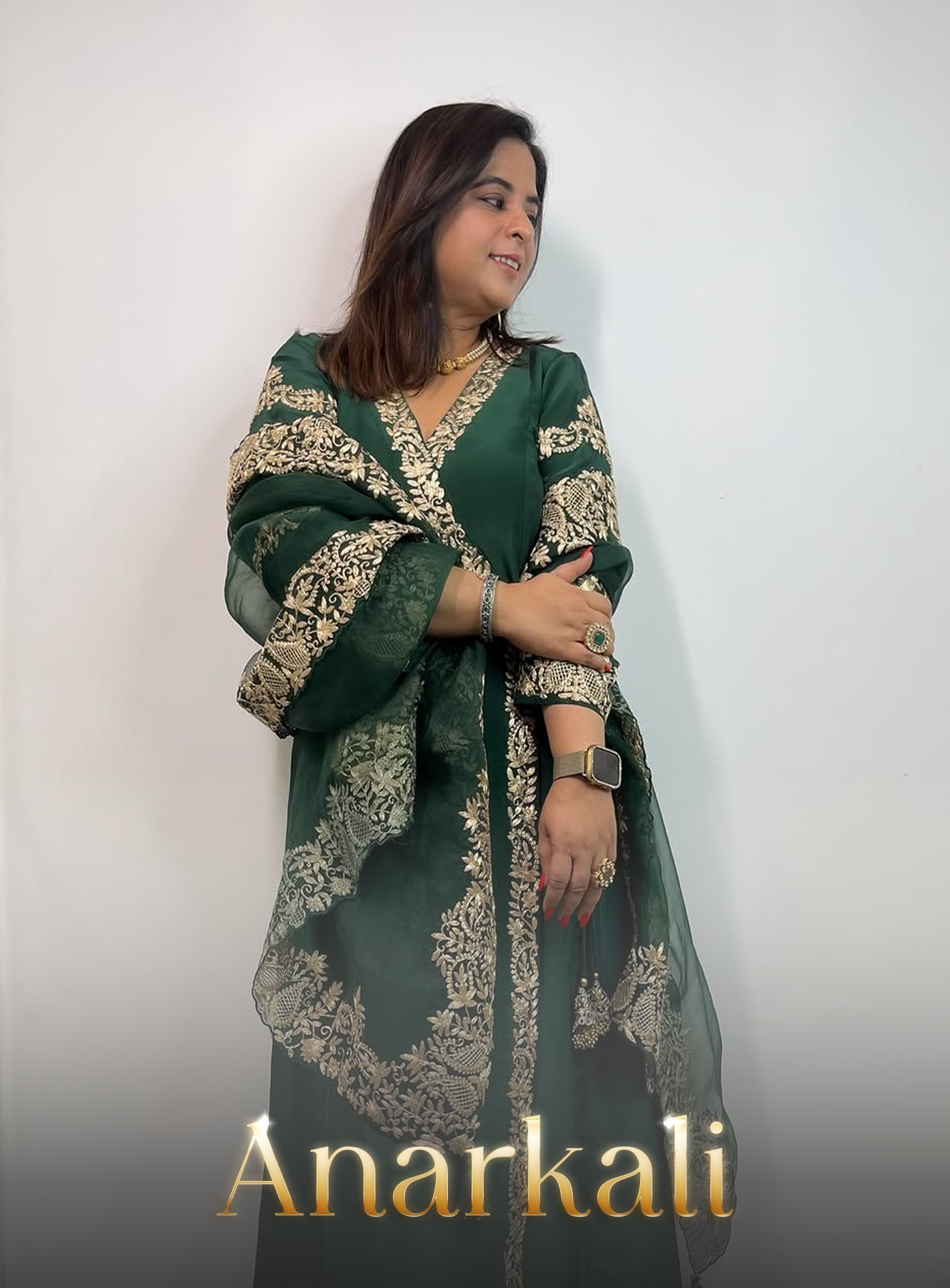 Beautiful Hand Embroidered Palki Design on Flat Raw Silk Suit with Tissue Dupatta Which has Brocade Borders