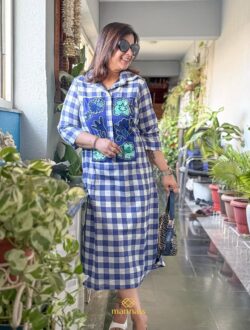 Cotton Checks Shirt Dress Adorned with a Delicate Hand-Embroidered